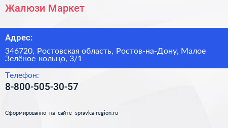 Жалюзи Маркет по адресу 346720, Ростовская область, Ростов-на-Дону, Малое Зелёное кольцо, 3/1 в дальнейшем Организация, размещена в следующих категориях: