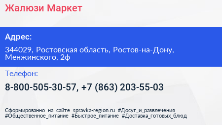 Жалюзи Маркет по адресу 344029, Ростовская область, Ростов-на-Дону, Менжинского, 2ф в дальнейшем Организация, размещена в следующих категориях: