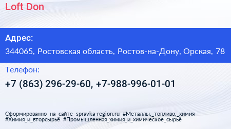 Loft Don по адресу 344065, Ростовская область, Ростов-на-Дону, Орская, 78 в дальнейшем Организация, размещена в следующих категориях: