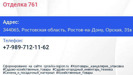 Отделка 761 по адресу 344065, Ростовская область, Ростов-на-Дону, Орская, 31в в дальнейшем Организация, размещена в следующих категориях: