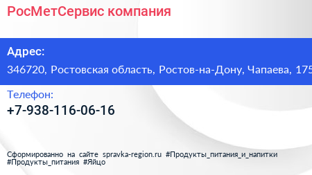 РосМетСервис, компания по адресу 346720, Ростовская область, Ростов-на-Дону, Чапаева, 175 в дальнейшем Организация, размещена в следующих категориях: