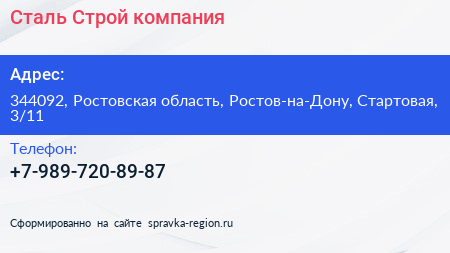 Сталь-Строй, компания по адресу 344092, Ростовская область, Ростов-на-Дону, Стартовая, 3/11 в дальнейшем Организация, размещена в следующих категориях: