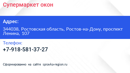 Супермаркет окон по адресу 344038, Ростовская область, Ростов-на-Дону, проспект Ленина, 107 в дальнейшем Организация, размещена в следующих категориях: