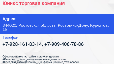 Юникс, торговая компания по адресу 344020, Ростовская область, Ростов-на-Дону, Курчатова, 1а в дальнейшем Организация, размещена в следующих категориях: