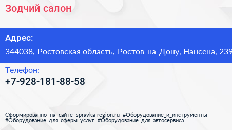 Зодчий, салон по адресу 344038, Ростовская область, Ростов-на-Дону, Нансена, 239 в дальнейшем Организация, размещена в следующих категориях: