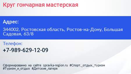 Круг, гончарная мастерская по адресу 344002, Ростовская область, Ростов-на-Дону, Большая Садовая, 63/8 в дальнейшем Организация, размещена в следующих категориях: