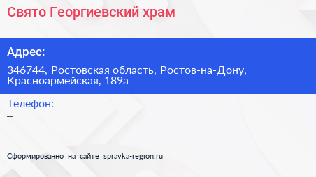 Свято-Георгиевский храм по адресу 346744, Ростовская область, Ростов-на-Дону, Красноармейская, 189а в дальнейшем Организация, размещена в следующих категориях: