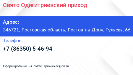 Свято-Одигитриевский приход по адресу 346721, Ростовская область, Ростов-на-Дону, Гулаева, 66 в дальнейшем Организация, размещена в следующих категориях: