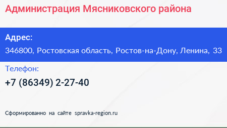 Администрация Мясниковского района по адресу 346800, Ростовская область, Ростов-на-Дону, Ленина, 33 в дальнейшем Организация, размещена в следующих категориях: