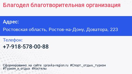 Благодел, благотворительная организация по адресу Ростовская область, Ростов-на-Дону, Доватора, 223 в дальнейшем Организация, размещена в следующих категориях: