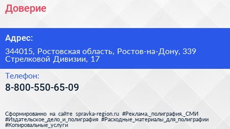 Доверие по адресу 344015, Ростовская область, Ростов-на-Дону, 339 Стрелковой Дивизии, 17 в дальнейшем Организация, размещена в следующих категориях:
