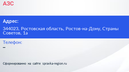 АЗС по адресу 344023, Ростовская область, Ростов-на-Дону, Страны Советов, 1а в дальнейшем Организация, размещена в следующих категориях: