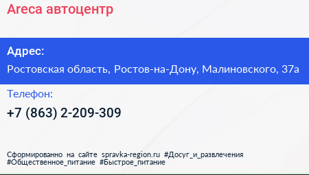 Areca, автоцентр по адресу Ростовская область, Ростов-на-Дону, Малиновского, 37а в дальнейшем Организация, размещена в следующих категориях:
