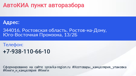 АвтоКИА, пункт авторазбора по адресу 344016, Ростовская область, Ростов-на-Дону, Юго-Восточная Промзона, 13/2Б в дальнейшем Организация, размещена в следующих категориях: