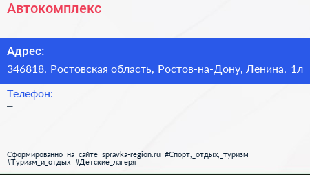 Автокомплекс по адресу 346818, Ростовская область, Ростов-на-Дону, Ленина, 1л в дальнейшем Организация, размещена в следующих категориях: