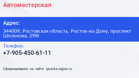 Автомастерская по адресу 344009, Ростовская область, Ростов-на-Дону, проспект Шолохова, 298г в дальнейшем Организация, размещена в следующих категориях: