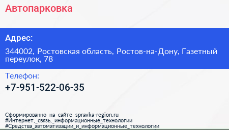 Автопарковка по адресу 344002, Ростовская область, Ростов-на-Дону, Газетный переулок, 78 в дальнейшем Организация, размещена в следующих категориях: