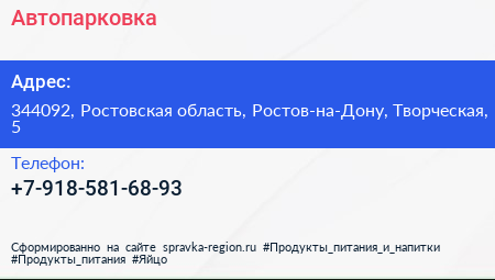 Автопарковка по адресу 344092, Ростовская область, Ростов-на-Дону, Творческая, 5 в дальнейшем Организация, размещена в следующих категориях: