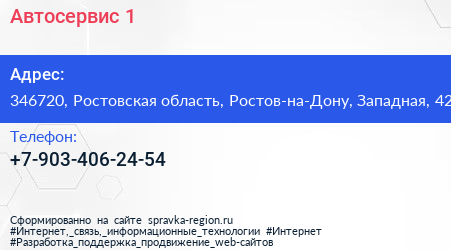 Автосервис №1 по адресу 346720, Ростовская область, Ростов-на-Дону, Западная, 42 в дальнейшем Организация, размещена в следующих категориях: