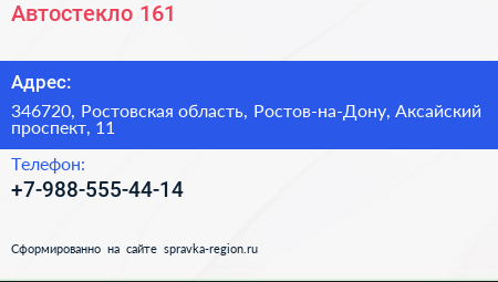 Автостекло 161 по адресу 346720, Ростовская область, Ростов-на-Дону, Аксайский проспект, 11 в дальнейшем Организация, размещена в следующих категориях: