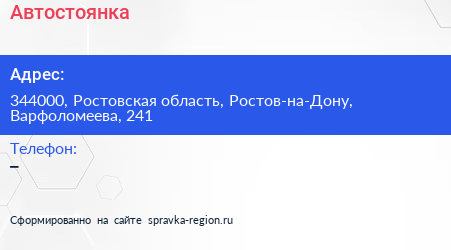 Автостоянка по адресу 344000, Ростовская область, Ростов-на-Дону, Варфоломеева, 241 в дальнейшем Организация, размещена в следующих категориях: