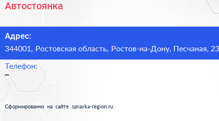 Автостоянка по адресу 344001, Ростовская область, Ростов-на-Дону, Песчаная, 23 в дальнейшем Организация, размещена в следующих категориях: