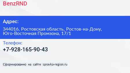 BenzRND по адресу 344016, Ростовская область, Ростов-на-Дону, Юго-Восточная Промзона, 17/1 в дальнейшем Организация, размещена в следующих категориях: