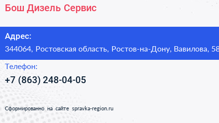 Бош Дизель Сервис по адресу 344064, Ростовская область, Ростов-на-Дону, Вавилова, 58 в дальнейшем Организация, размещена в следующих категориях: