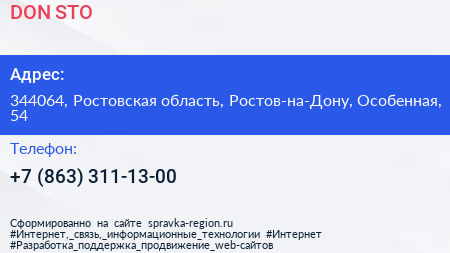 DON-STO по адресу 344064, Ростовская область, Ростов-на-Дону, Особенная, 54 в дальнейшем Организация, размещена в следующих категориях:
