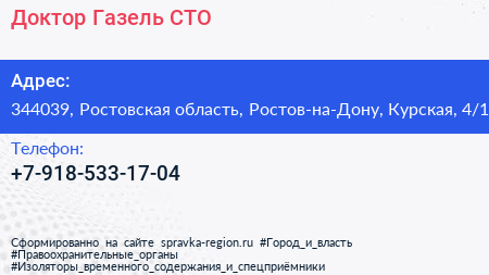 Доктор Газель, СТО по адресу 344039, Ростовская область, Ростов-на-Дону, Курская, 4/1 в дальнейшем Организация, размещена в следующих категориях: