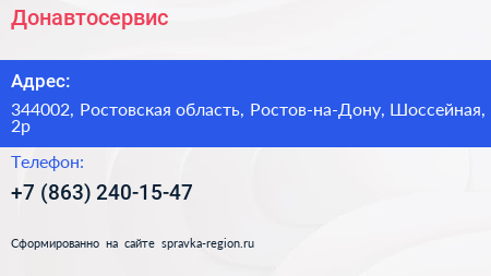 Донавтосервис по адресу 344002, Ростовская область, Ростов-на-Дону, Шоссейная, 2р в дальнейшем Организация, размещена в следующих категориях: