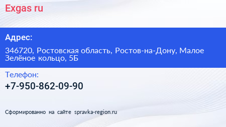 Exgas.ru по адресу 346720, Ростовская область, Ростов-на-Дону, Малое Зелёное кольцо, 5Б в дальнейшем Организация, размещена в следующих категориях: