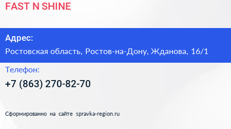 FAST`N`SHINE по адресу Ростовская область, Ростов-на-Дону, Жданова, 16/1 в дальнейшем Организация, размещена в следующих категориях: