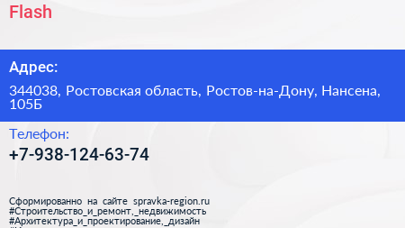 Flash по адресу 344038, Ростовская область, Ростов-на-Дону, Нансена, 105Б в дальнейшем Организация, размещена в следующих категориях: