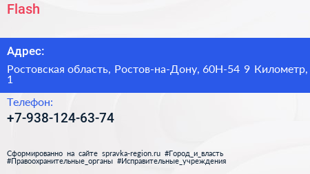 Flash по адресу Ростовская область, Ростов-на-Дону, 60Н-54 9 Километр, 1 в дальнейшем Организация, размещена в следующих категориях: