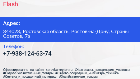 Flash по адресу 344023, Ростовская область, Ростов-на-Дону, Страны Советов, 7а в дальнейшем Организация, размещена в следующих категориях: