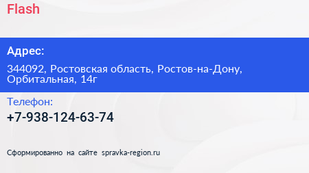 Flash по адресу 344092, Ростовская область, Ростов-на-Дону, Орбитальная, 14г в дальнейшем Организация, размещена в следующих категориях: