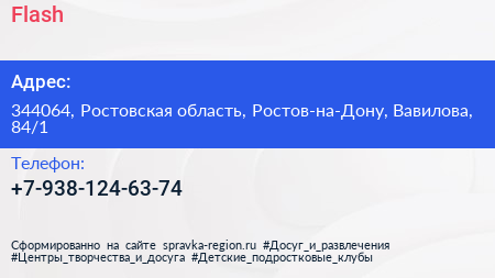 Flash по адресу 344064, Ростовская область, Ростов-на-Дону, Вавилова, 84/1 в дальнейшем Организация, размещена в следующих категориях: