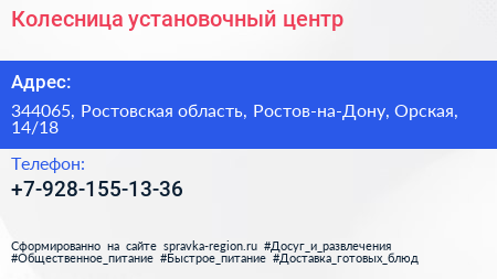 Колесница, установочный центр по адресу 344065, Ростовская область, Ростов-на-Дону, Орская, 14/18 в дальнейшем Организация, размещена в следующих категориях: