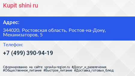Kupit-shini.ru по адресу 344020, Ростовская область, Ростов-на-Дону, Механизаторов, 5 в дальнейшем Организация, размещена в следующих категориях: