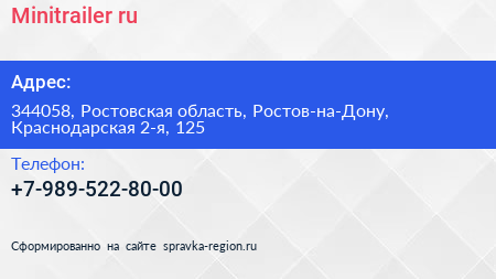 Minitrailer.ru по адресу 344058, Ростовская область, Ростов-на-Дону, Краснодарская 2-я, 125 в дальнейшем Организация, размещена в следующих категориях: