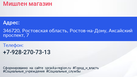 Мишлен, магазин по адресу 346720, Ростовская область, Ростов-на-Дону, Аксайский проспект, 7 в дальнейшем Организация, размещена в следующих категориях: