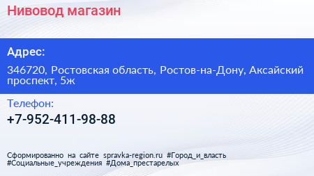 Нивовод, магазин по адресу 346720, Ростовская область, Ростов-на-Дону, Аксайский проспект, 5ж в дальнейшем Организация, размещена в следующих категориях: