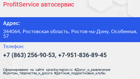 ProfitService, автосервис по адресу 344064, Ростовская область, Ростов-на-Дону, Особенная, 57 в дальнейшем Организация, размещена в следующих категориях: