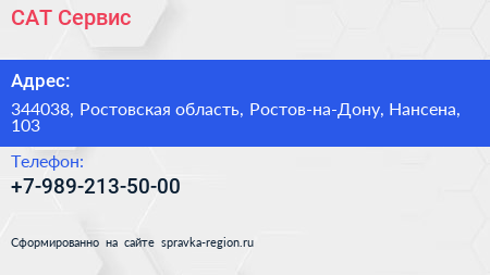 САТ-Сервис по адресу 344038, Ростовская область, Ростов-на-Дону, Нансена, 103 в дальнейшем Организация, размещена в следующих категориях: