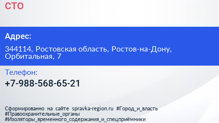 СТО по адресу 344114, Ростовская область, Ростов-на-Дону, Орбитальная, 7 в дальнейшем Организация, размещена в следующих категориях: