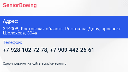 SeniorBoeing по адресу 344009, Ростовская область, Ростов-на-Дону, проспект Шолохова, 304а в дальнейшем Организация, размещена в следующих категориях:
