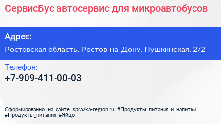 СервисБус, автосервис для микроавтобусов по адресу Ростовская область, Ростов-на-Дону, Пушкинская, 2/2 в дальнейшем Организация, размещена в следующих категориях: