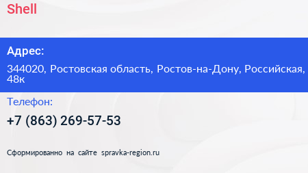 Shell по адресу 344020, Ростовская область, Ростов-на-Дону, Российская, 48к в дальнейшем Организация, размещена в следующих категориях: