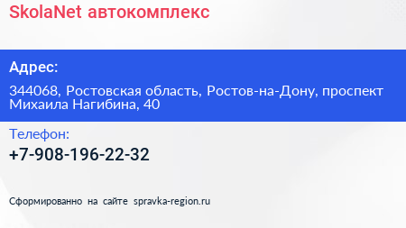 SkolaNet, автокомплекс по адресу 344068, Ростовская область, Ростов-на-Дону, проспект Михаила Нагибина, 40 в дальнейшем Организация, размещена в следующих категориях: